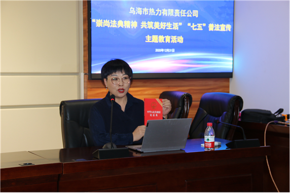為了更好地普及法律知識,總結公司“七五”普法工作,進一步提升公司職工的法律意識,12月31日下午,烏海市熱力有限責任公司開展“崇尚法典精神 共筑美好生活”“七五”普法宣傳主題教育活動。熱力公司領導班子成員、環(huán)節(jié)干部、機關全體工作人員、窗口全體工作人員、分公司客服人員近100余人參加活動,活動特邀烏海市濟海侓師事務所楊海嵐律師做民法典重點內(nèi)容解讀。