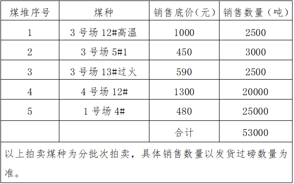 (2)2023年9月25日10時整在烏海市晟泰能源有限責任公司一樓會議室現(xiàn)場競拍殘煤,競拍結(jié)束將現(xiàn)場公示最高報價,簽訂成交確認書。