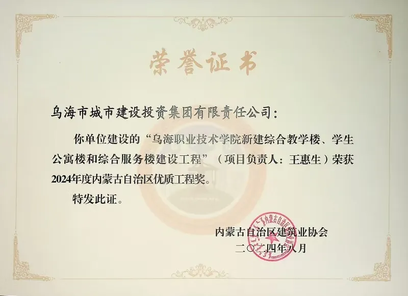 喜報(bào)!烏海市城建投融資有限責(zé)任公司一項(xiàng)目榮獲“2024年度內(nèi)蒙古自治區(qū)建筑工程優(yōu)質(zhì)工程獎(jiǎng)”