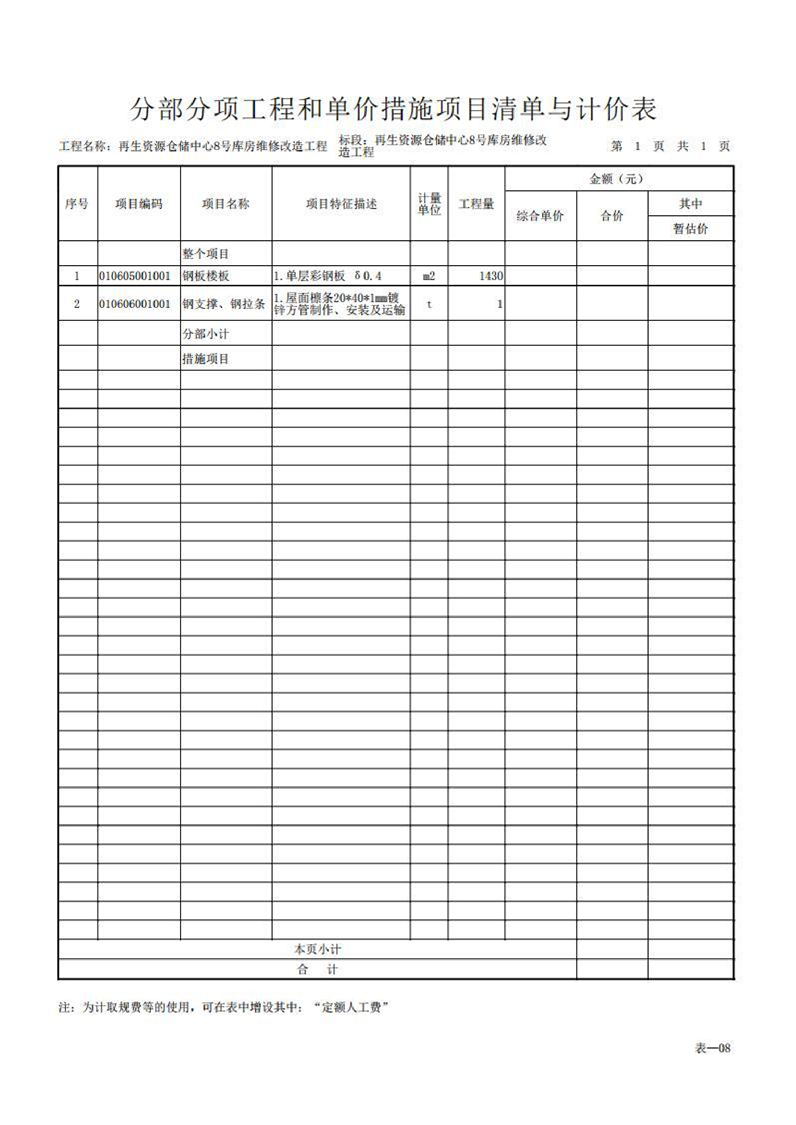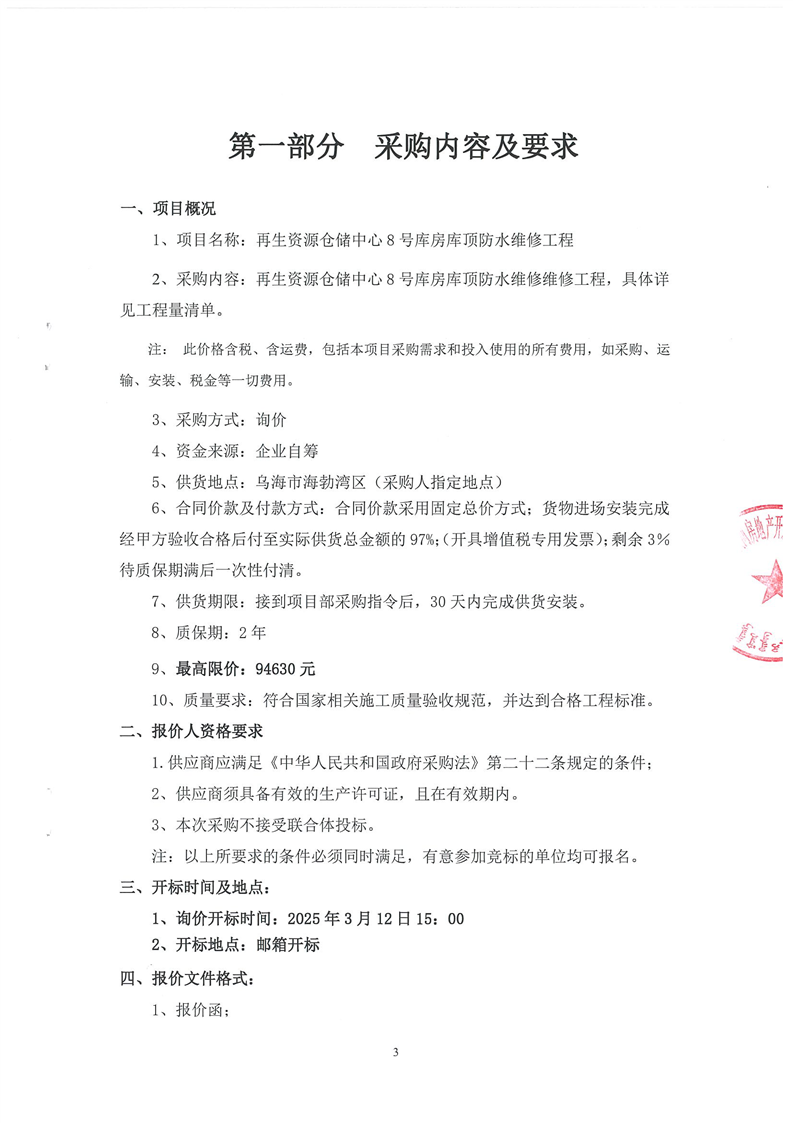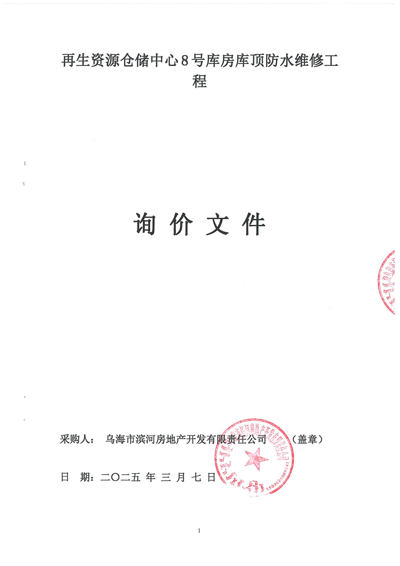 再生資源倉(cāng)儲(chǔ)中心8號(hào)庫(kù)房庫(kù)頂防水維修工程詢價(jià)文件