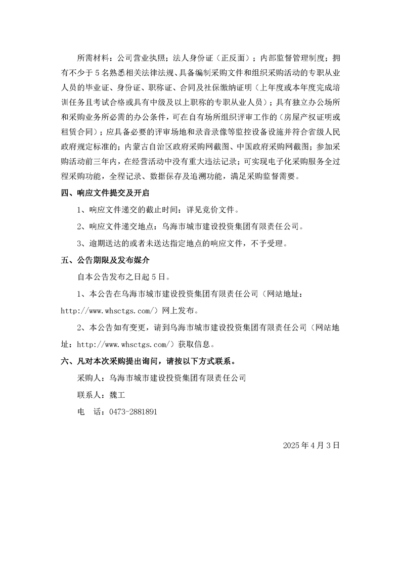 - 2025-12-15“烏海城投集團(tuán)”微信公眾平臺服務(wù)項(xiàng)詢價公告