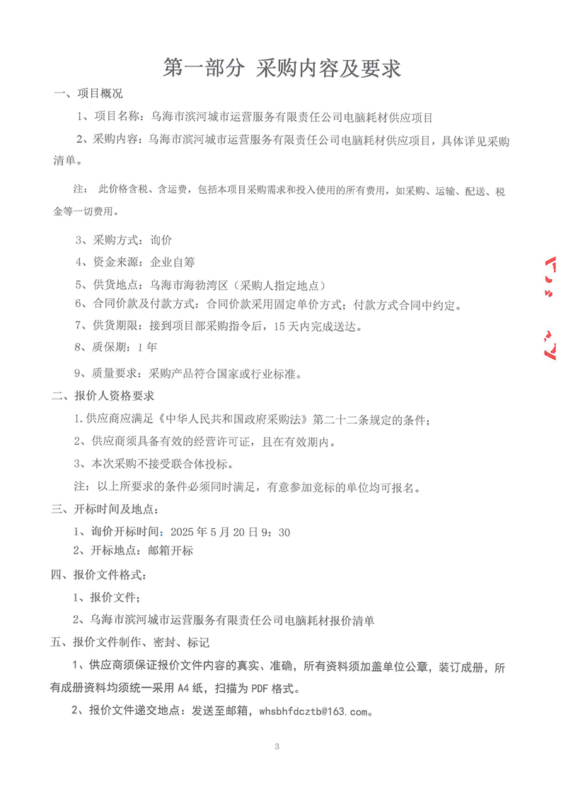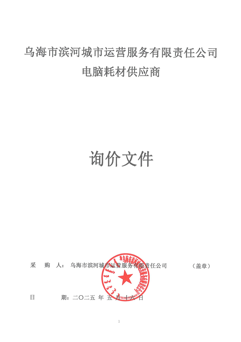 烏海市濱河城市運(yùn)營(yíng)服務(wù)有限責(zé)任公司電腦耗材供應(yīng)商詢價(jià)文件
