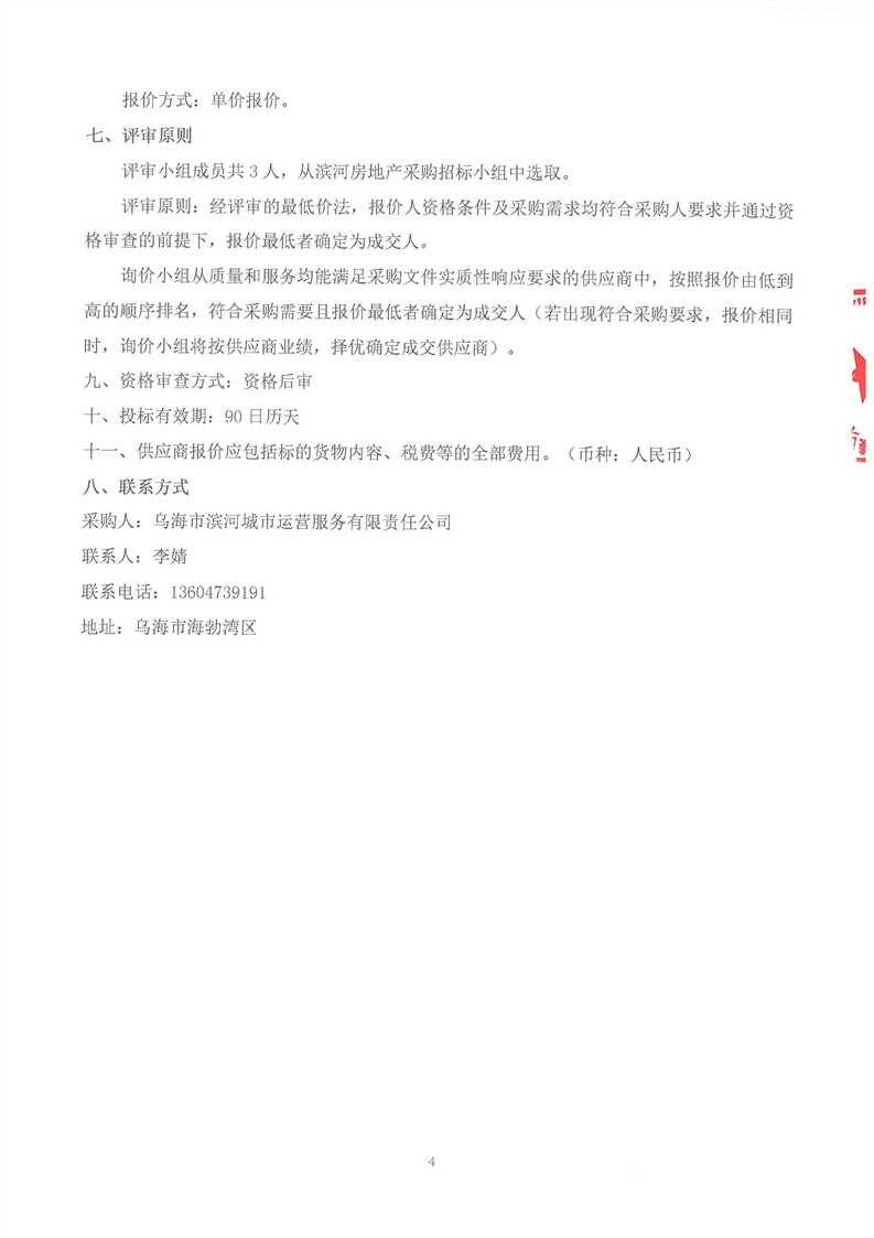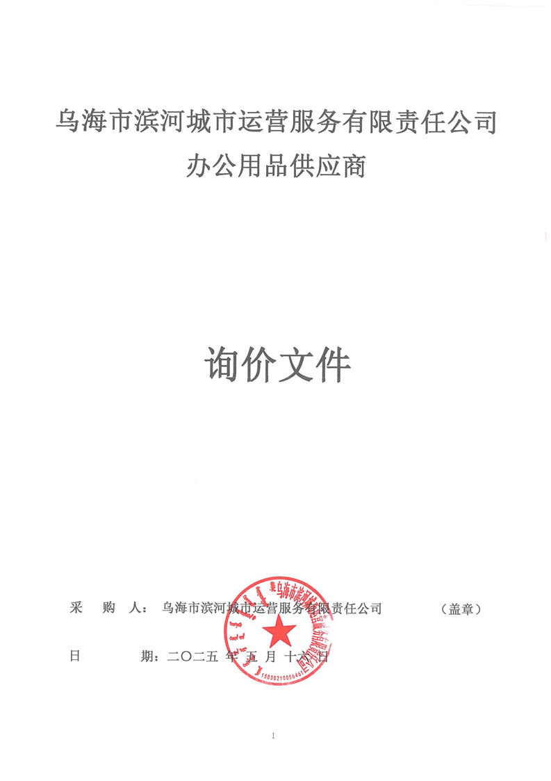 烏海市濱河城市運(yùn)營(yíng)服務(wù)有限責(zé)任公司辦公用品供應(yīng)商詢價(jià)文件