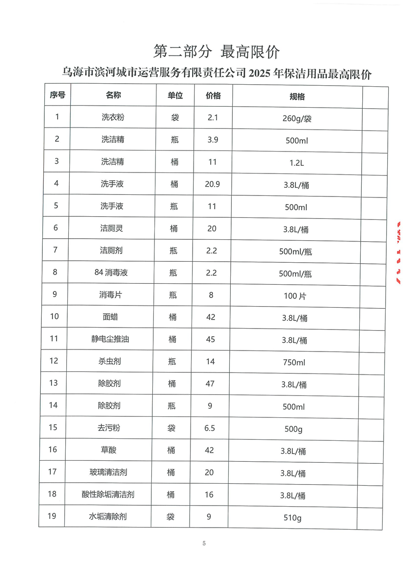 烏海市濱河城市運(yùn)營服務(wù)有限責(zé)任公司物業(yè)耗材供應(yīng)商采購詢價(jià)文件