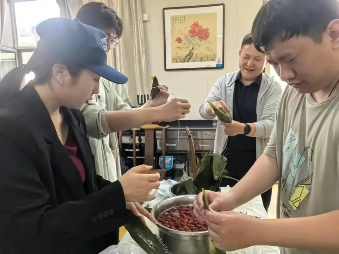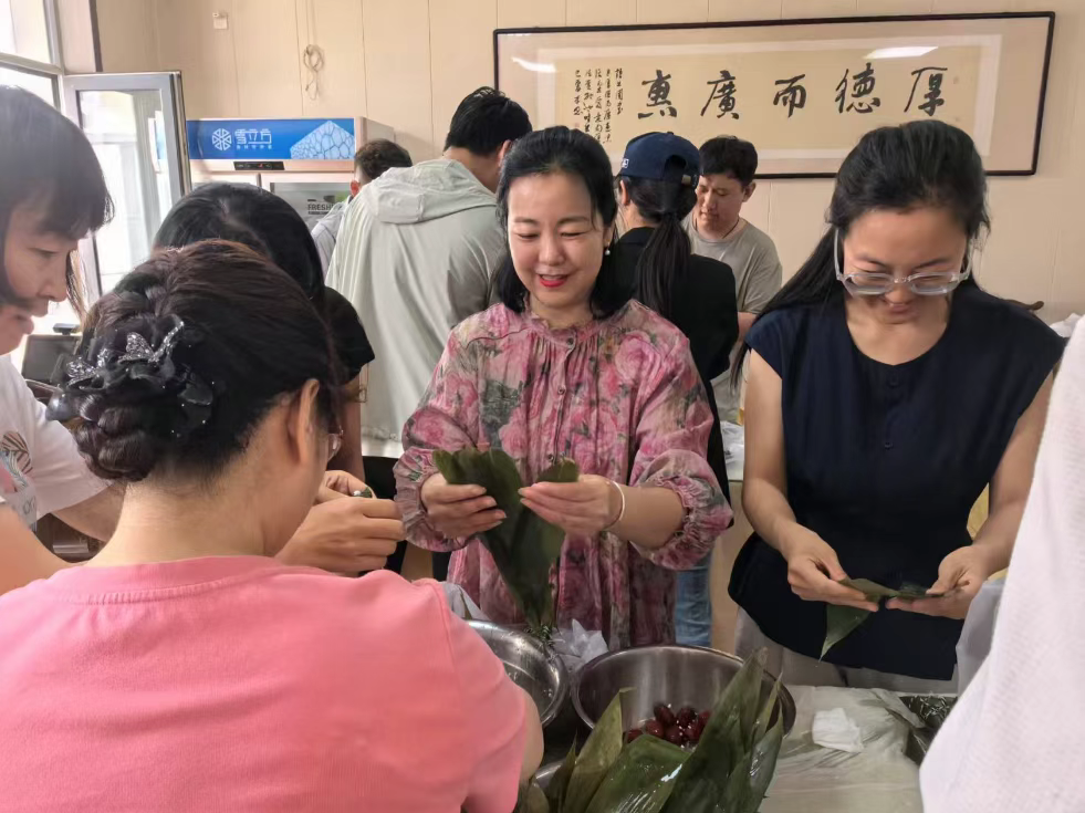 活動(dòng)以艾草花束DIY手作拉開帷幕,大家以艾草為主材料,再搭配上裝飾掛件,一起動(dòng)手制作艾草花束。一束束別具特色、香氣撲鼻的艾草花束,喚醒端午的儀式感。隨后,大家圍坐在職工餐廳,紛紛展示起了自己的包粽子手藝活,一個(gè)個(gè)裝滿糯米紅棗的粽子逐漸成形,這些粽子雖然模樣不盡相同,但都飽含著大家的心意和對節(jié)日的美好期待。