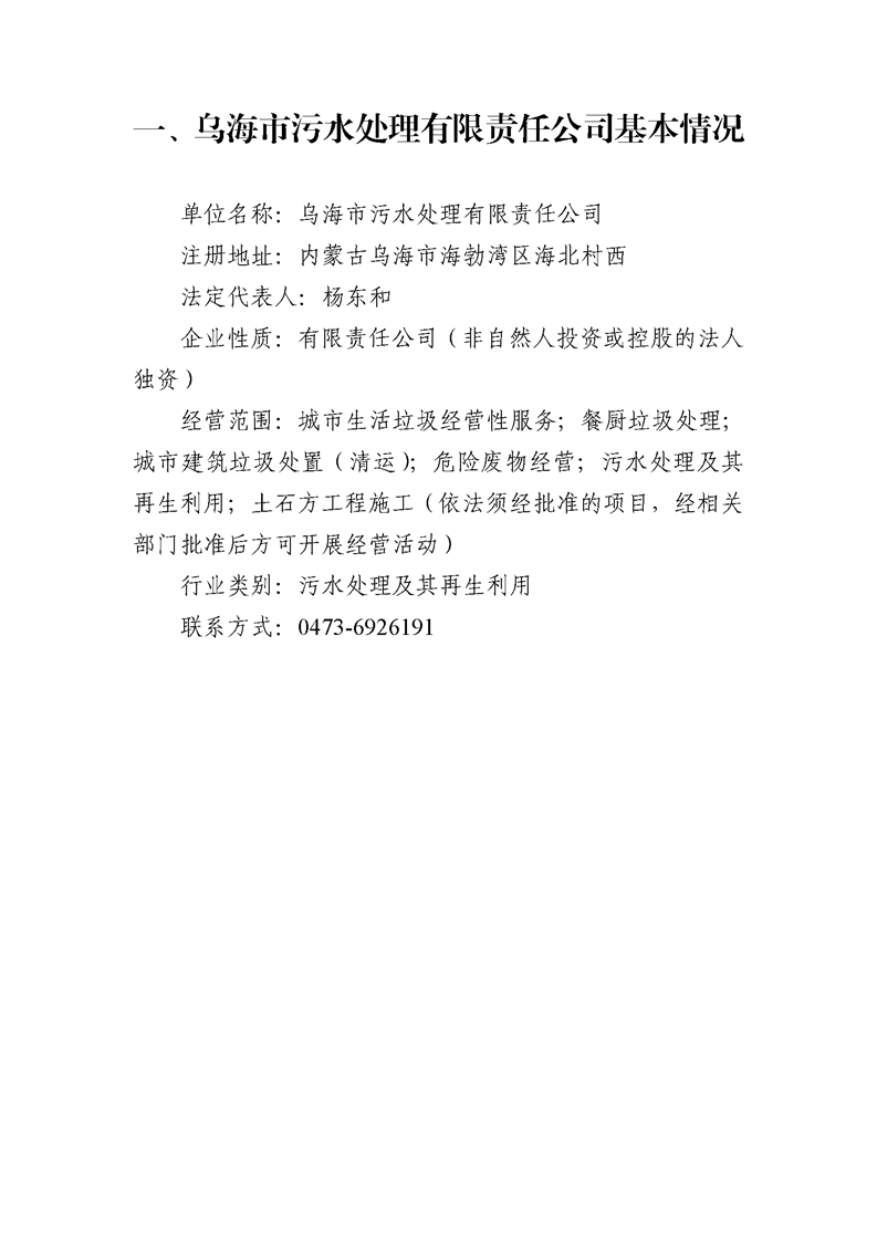 - 2025-04-10烏海市污水處理有限責任公司2024年度信息公開報告