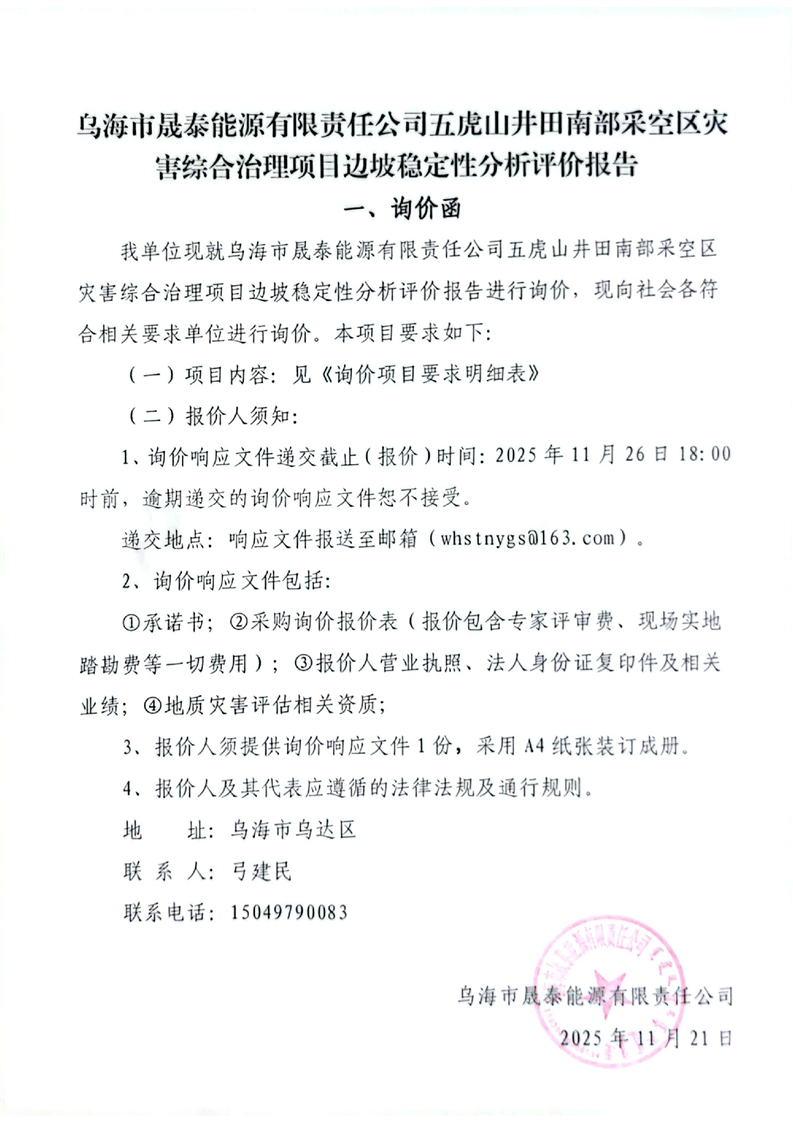烏海市晟泰能源有限責(zé)任公司五虎山井田南部采空區(qū)災(zāi)害綜合治理項目邊坡穩(wěn)定性分析評價報告