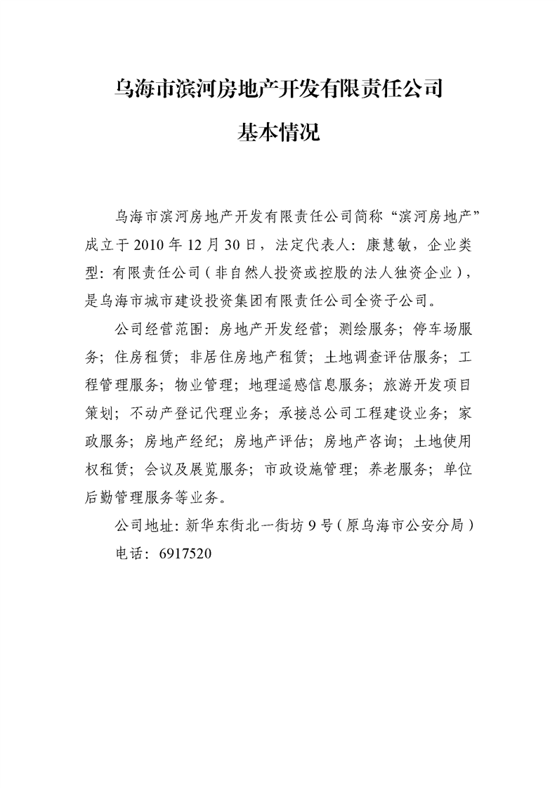 - 2024-07-09烏海市濱河房地產(chǎn)開發(fā)有限責任公司2024年第二季度信息公開