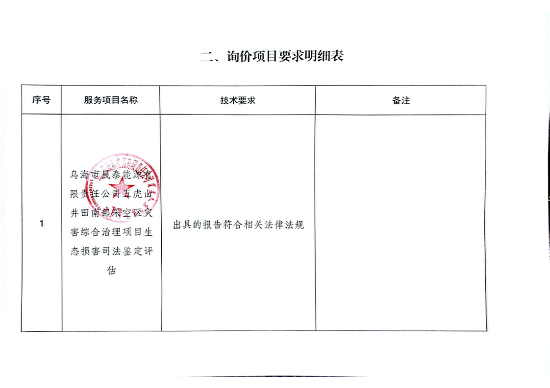 烏海市晟泰能源有限責任公司五虎山井田南部采空區(qū)災(zāi)害綜合治理項目生態(tài)環(huán)境損害司法鑒定評估項目詢價公告