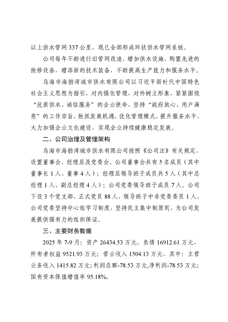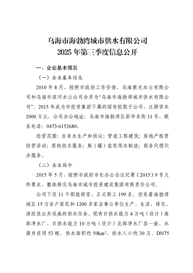 - 2024-10-11烏海市海勃灣城市供水有限公司2024年第三季度信息公開