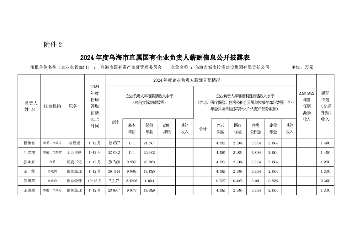 2024年度烏海市直屬國(guó)有企業(yè)負(fù)責(zé)人薪酬信息公開(kāi)披露表